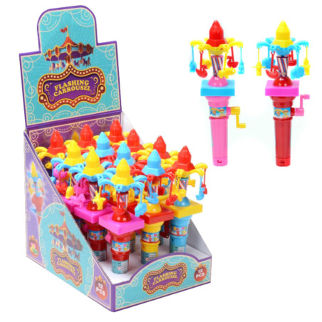 giocattolo con caramelle al gusto di frutta, GIRA LA GIOSTRINA CON LA MANOVELLA
