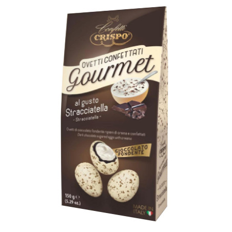 OVETTI CONFETTATI DI CIOCCOLATO FONDENTE RIPIENI DI CREMA AL GUSTO STRACCIATELLA