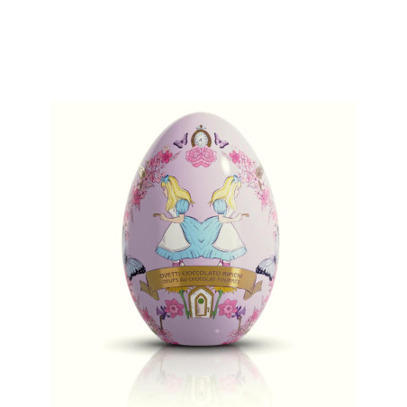 Un’elegante e ricercata latta a forma di uovo, piena di deliziosi ovetti di cioccolato assortiti. Un tesoro goloso tutto da scoprire e gustare.
