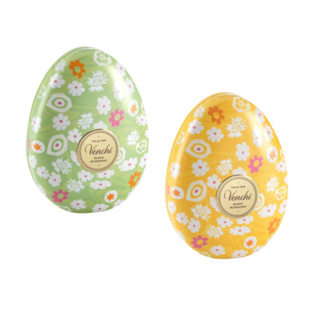 Uovo di latta giallo o verde con ovetti di cioccolato 77 g