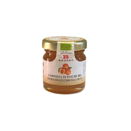 Questa composta viene prodotta con le migliori Pesche da agricoltura biologica. Non contiene zucchero aggiunto ma solo quelli naturalmente presenti nella frutta. Morbida e ricca di pezzi di frutta, viene addoclita con succo di mela biologico. Viene presentato anche in questa versione mignon da 40 g, perfetta come idea regalo o come bomboniera per ogni tipo di evento.