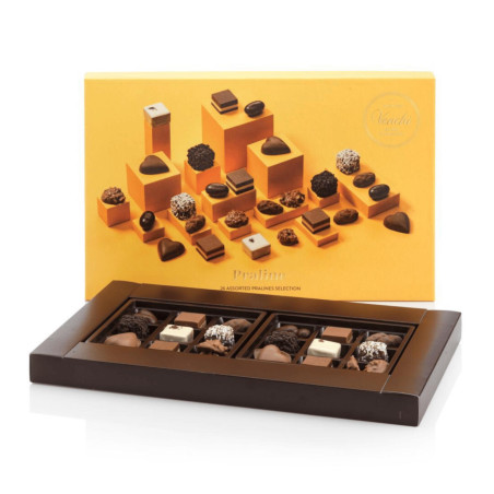 Un regalo per veri intenditori! Racchiuse all'interno di un'elegante scatola color ocra, una selezione di praline capace di accostare sapori avvolgenti e cremosi, aromatici e intensi per un'esperienza di gusto sensazionale ed originale: Nougatine, fave di cacao al cioccolato, cioccolatini Valentines al latte a forma di cuore, mini pralina ricoperta con scaglie cocco e molto altro ancora!