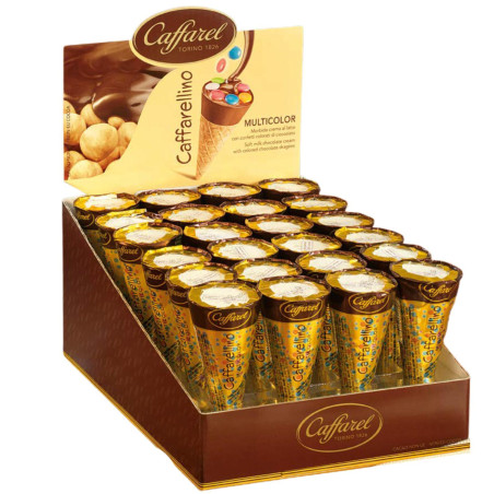 Conetti di croccante cialda in una golosa ricetta al cioccolato al latte e con colorati confetti.
