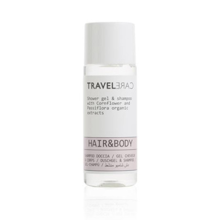 IL GEL DOCCIA E LO SHAMPOO TRAVELCARE È ARRICCHITO CON ESTRATTI BIOLOGICI