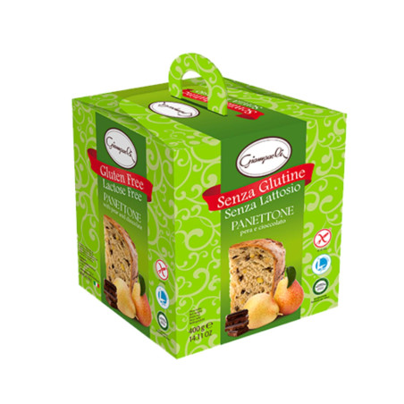 Panettone Pera e Cioccolato senza glutine e senza lattosio – A Natale non rinunciare al gusto di questo dolce sorprendentemente raffinato! Giampaoli pensa proprio a tutti con questa delizia adatta a chi non può assumere glutine e lattosio, ma vuole festeggiare un Natale assolutamente speciale.