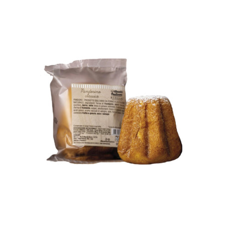 Il nostro pandorino ha una lavorazione di 72 ore in cui si esaltano i due ingredienti fondamentali che lo compongono: burro e zucchero. Quest’ultimi rendono l’impasto più ricco con un’alveolatura più chiusa dando in bocca una struttura più scioglibile. Ha una fase di lavorazione in più rispetto al panettone: la smodellatura. Si tratta di un’operazione fatta a mano, pezzo per pezzo, in cui il prodotto viene tolto dal suo stampo in alluminio a differenza del panettone che rimane nel suo stampo di carta. Il prodotto è confezionato in flow pack.