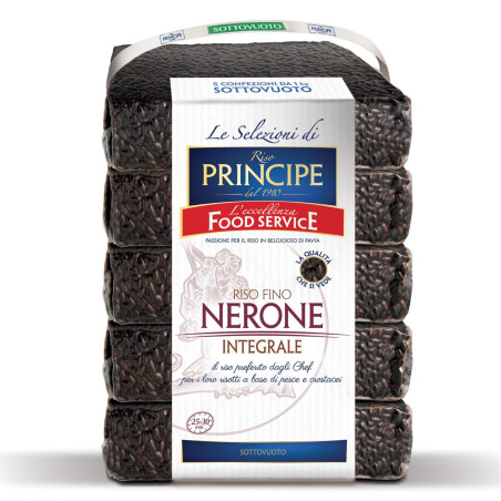 Coltivato in Italia, il riso Nerone è un riso integrale caratterizzato da un intenso colore nero, molto lucente e da un piacevole aroma che ricorda il legno di sandalo. È ideale per accompagnare piatti di pesce o per creare fantasiose insalate. Riso Principe nasce nel 1910 a Belgioioso, borgo pavese situato a pochi chilometri dalla riva sinistra del Po, nel cuore delle risaie e, da oltre cento anni, è garanzia di un riso italiano di alta qualità e genuinità. Cinque mattonelle separate sottovuoto da 1Kg ciascuna, a garanzia della freschezza del riso. Ideale sia per piccoli e medi ristoratori qualificati.