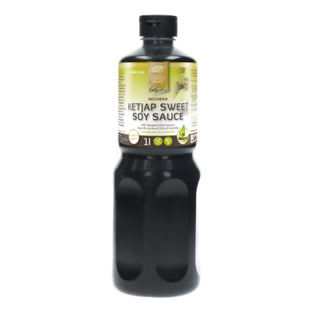 La salsa di soia dolce Ketjap è una salsa di soia densa e sciropposa con un gusto dolce pronunciato. La salsa di soia dolce, chiamata anche Ketjap Manis, è un ingrediente importante nei piatti indonesiani, come nasi goreng, bami goreng, satay, tongseng e semur. La salsa di soia dolce Ketjap Golden Turtle for Chefs™ non contiene conservanti, esaltatori di sapidità e coloranti artificiali.