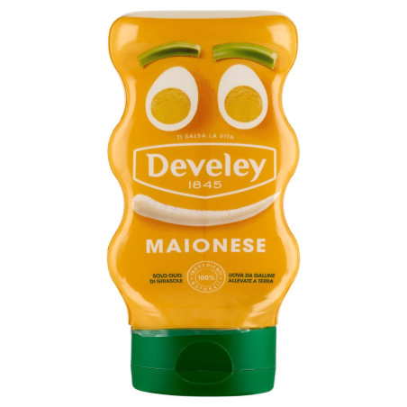Prova la prima Maionese Develey: semplicemente naturale e gustosissima!100% ingredienti naturali, solo olio di girasole e uova da galline allevate a terra. Ideale su hamburger, grigliate, bolliti e patatine !! Un’esperienza che ti salsa la vita. Parola di Minions! Una maionese adatta a un’alimentazione priva di glutine, senza aggiunta di conservanti ed esaltatori di sapidità. Si presenta nel pratico squeeze top down trasparente con tappo dosatore, un formato accattivante e comodo che facilita la fuoriuscita del prodotto ed evita gli sprechi. Basta agitare la bottiglia prima dell'uso per salsarsi la vita con Develey. Il prodotto ha anche un sigillo di sicurezza a garanzia della qualità del prodotto, da togliere svitando il tappo al momento del primo utilizzo.