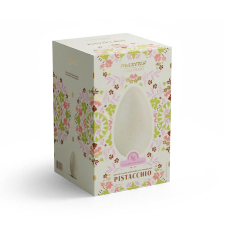 Un Uovo di Pasqua fatto da Maxtris con finissimo Cioccolato al Latte e granella di pistacchio, una vera e propria delizia.