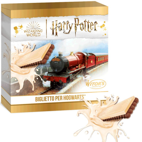 Il treno per Hogwarts parte dal Binario 9 e ¾… prima di salire in carrozza, è necessario avere con sé lo speciale biglietto. Ci pensa Witor’s con uno snack davvero gustoso: un biscotto con tavoletta di cioccolato al latte.