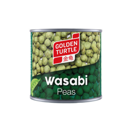 Il wasabi è conosciuto come una varietà piccante di rafano giapponese. Con i piselli wasabi di Golden Turtle nella lattina da 140 g, questo funge da rivestimento caldo e infuocato. Non appena questo rivestimento croccante si rompe in bocca, la nitidezza si combina con il sostanzioso sapore di pisello per creare uno spuntino delizioso. I piselli con un guscio di wasabi croccante di Golden Turtle non sono solo un successo ad ogni festa, ma anche molto pratici per un piccolo spuntino in viaggio.