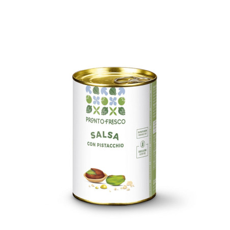 Salsa a base di pistacchio verde proveniente dalla zona tipica di Sicilia, macinato e preparato in modo da mantenere intenso aroma e colore brillante.