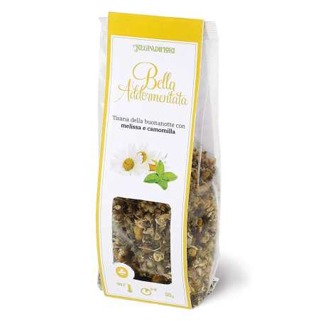 Rilassante e senza caffeina, ideale come dopo pasto o prima di andare a dormire. Questa morbida tisana unisce la freschezza della melissa e le dolci note della camomilla con un delicato profumo di arancio, per cullare i tuoi sogni fino al dolce bacio del risveglio. Confezione originale Regina di Fiori da 30g.