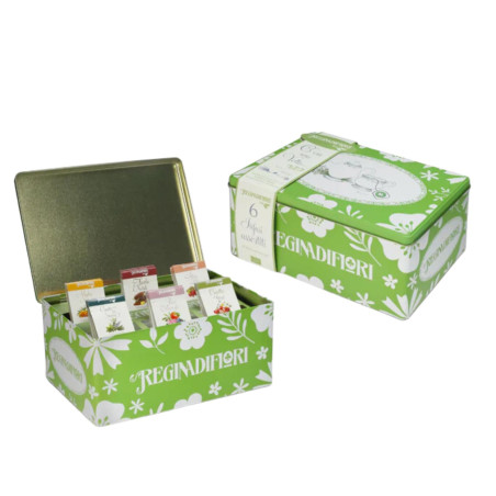 Regina di Fiori - Confezione Regalo in Latta Verde - Assortimento Tisane Biologiche 30 filtri