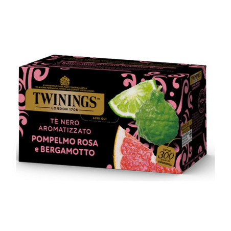 Il tè nero aromatizzato Pompelmo Rosa e Bergamotto Twinings unisce il gusto del tè nero Twinings alle note fresche e frizzanti del pompelmo rosa ed al profumo ricercato e intenso di bergamotto, per una sorprendente pausa dal gusto agrumato.
