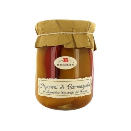 Classica ricetta della tradizione gastronomica piemontese. I migliori peperoni di Carmagnola, famosi per la loro incredibile croccantezza, vengono lavorati dal fresco e messi in agrodolce secondo una ricetta che si tramanda da generazioni. Un piatto semplice dal gusto inconfondibile.